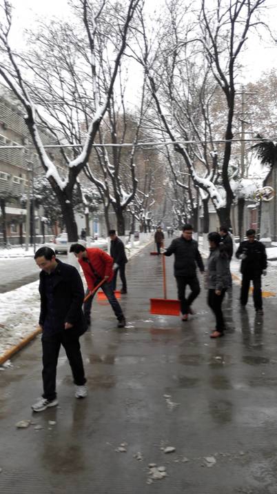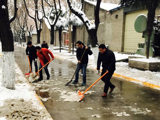 争做“西迁精神”新传人,从扫雪这件小事做起!本次扫雪行动不但清除了道路安全隐患,净化了校园环境,更体现了我中心全体教职工“心往一处想,劲往一处使”的十足干劲和良好风貌,增强了团队凝聚力,为日后团结一致推进实践教学工作起到了积极的促进作用。