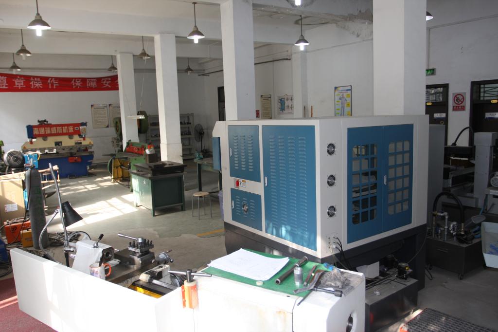 机器设备:折弯机1台,剪板机1台,冲床1台,点焊机1台,氩弧焊机1台,电弧焊机1台,台式钻床2台,普通车床1台,万能工具铣床1台,模具工具磨床1台,钳工操作台1个,划线平板1个。