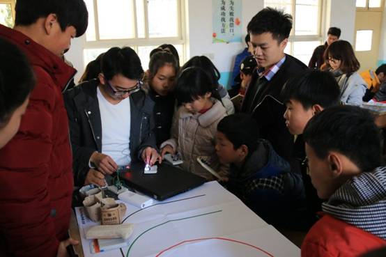 此次科技下乡活动宣传交流组组长黄志强先给同学们演示了慧鱼循迹小车的运作模式,并简单介绍了慧鱼的由来,也介绍了西交慧鱼队的发展历程,强调慧鱼是一个大家实现心中创意的绝佳平台,最后鼓励大家努力学习,借助慧鱼大胆实践自己的创意。活动结束后同行的志愿者们表示此次活动内容十分充实,中学的小朋友们也表示收获颇丰。
