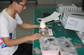 噪声发电装置是我校学生在经过秦岭隧道时,受隧道里汽车噪音和照明灯光的启发,考虑到我国能源问题日益严峻,挖掘潜在能源并加以利用非常迫切和重要。根据自己学到的理论知识,作为一种机械波的噪声携带着大量能量,能不能将噪声的能量转化成电能,供隧道照明?带着这个问题他走进了bet36365,利用bet36365所提供的自主创新实践环境,开展基于声电转换技术的噪声发电装置的试验设计。该装置主要由噪声收集转换部分、升压部分、整流稳压部分以及储能部分组成。可在电力线不易到达的偏远公路或铁路隧道应用。该装置获得2012年节能减排大赛特等奖。