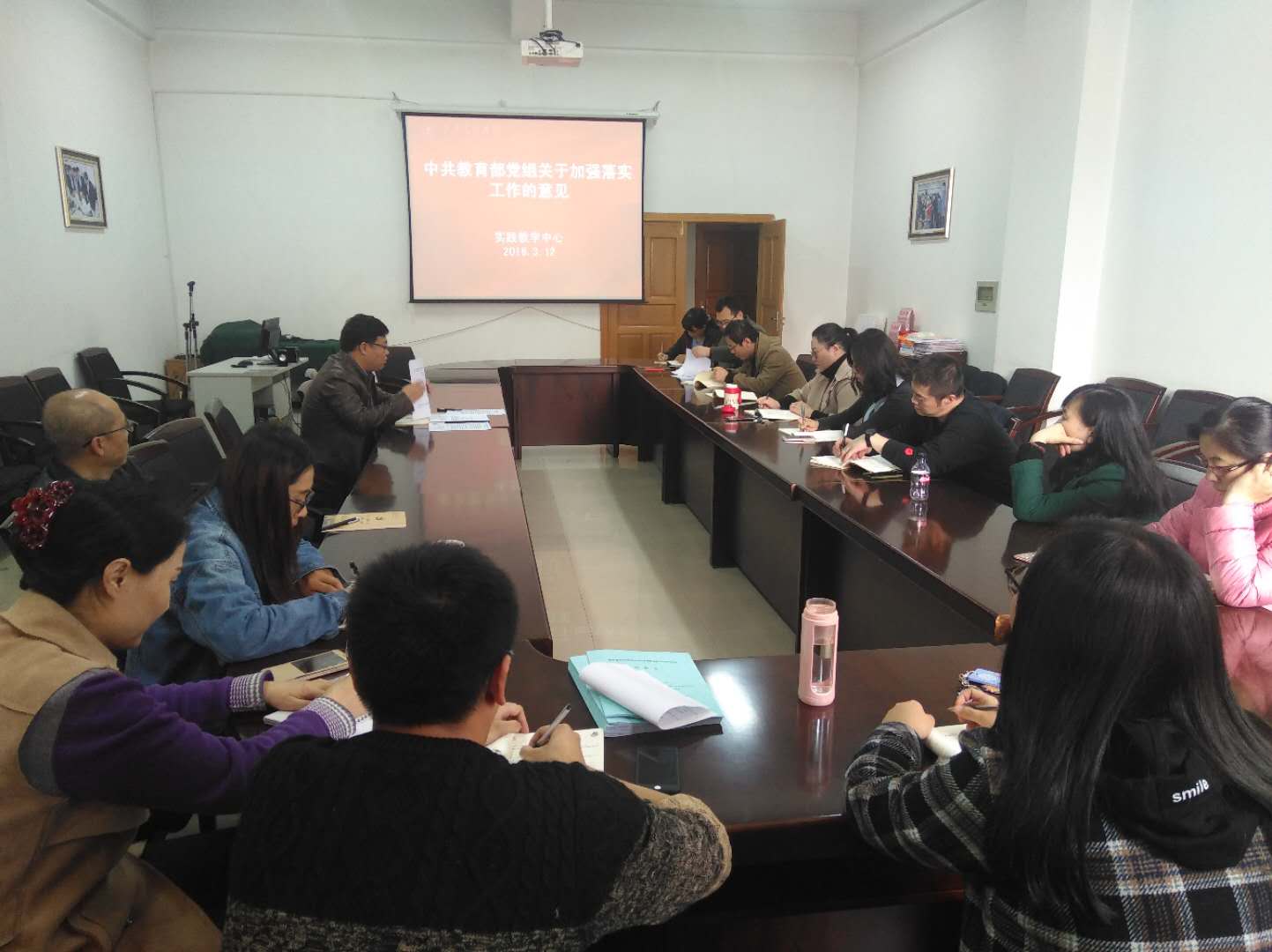 3月12日下午,实践教学中心党支部召开专题组织生活会,集体学习了《中共教育部党组关于加强落实工作的意见》 、《中共西安交通大学委员会关于加强学校重大决策部署督办工作的实施意见》以及《关于落实“创造留下历史印记新贡献”要求的通知》等文件。会议由实践教学中心副主任陈立斌主持,全体党员深刻学习领会了文件精神,并就加强落实工作的具体措施、如何创造留下历史印记新贡献进行了深入而广泛的讨论。